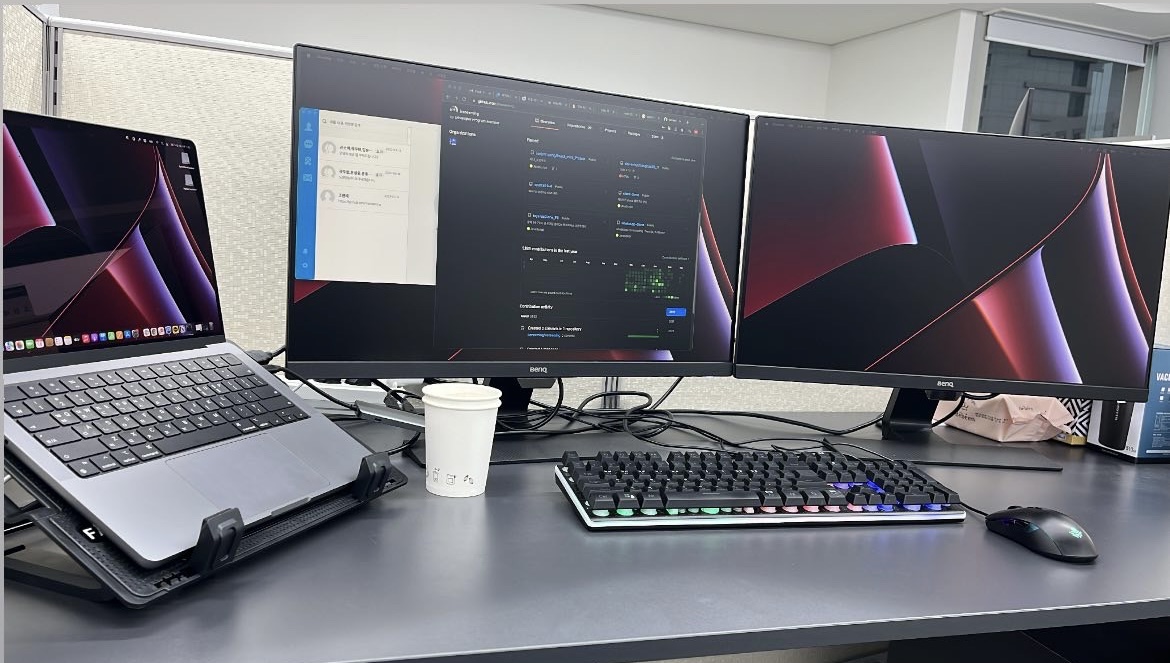 회사에서 맥북 쓴다는건 알고있었지만 이거넘모좋자나ㅋ 맥프로 M1이라니! 게다가 27인치 모니터 2개야ㅎ