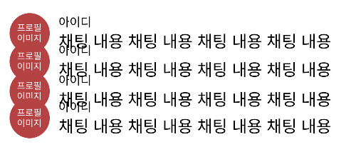 채팅 하나 자체가 컴포넌트이며, 프로필이미지, 아이디, 내용 전체를 감싸는 container에