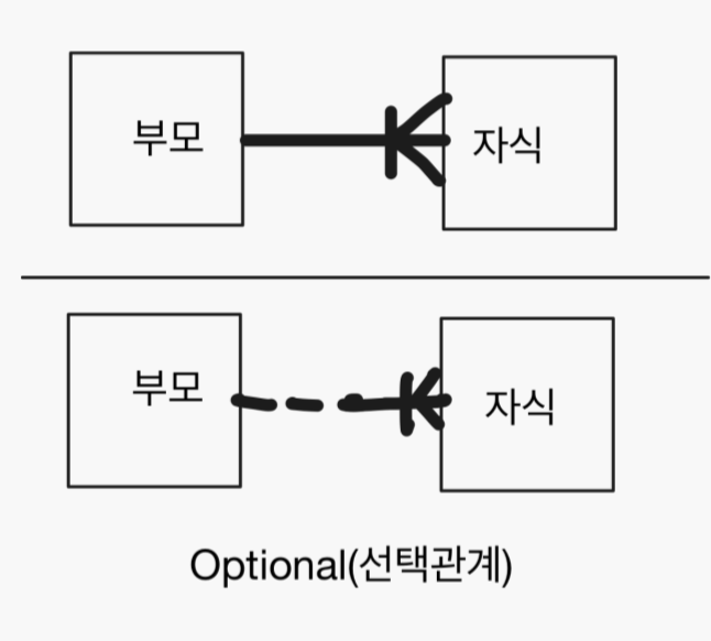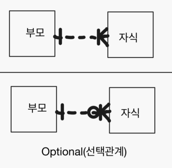 수직 실선 있음/ 선택관계 점선 ![]() |