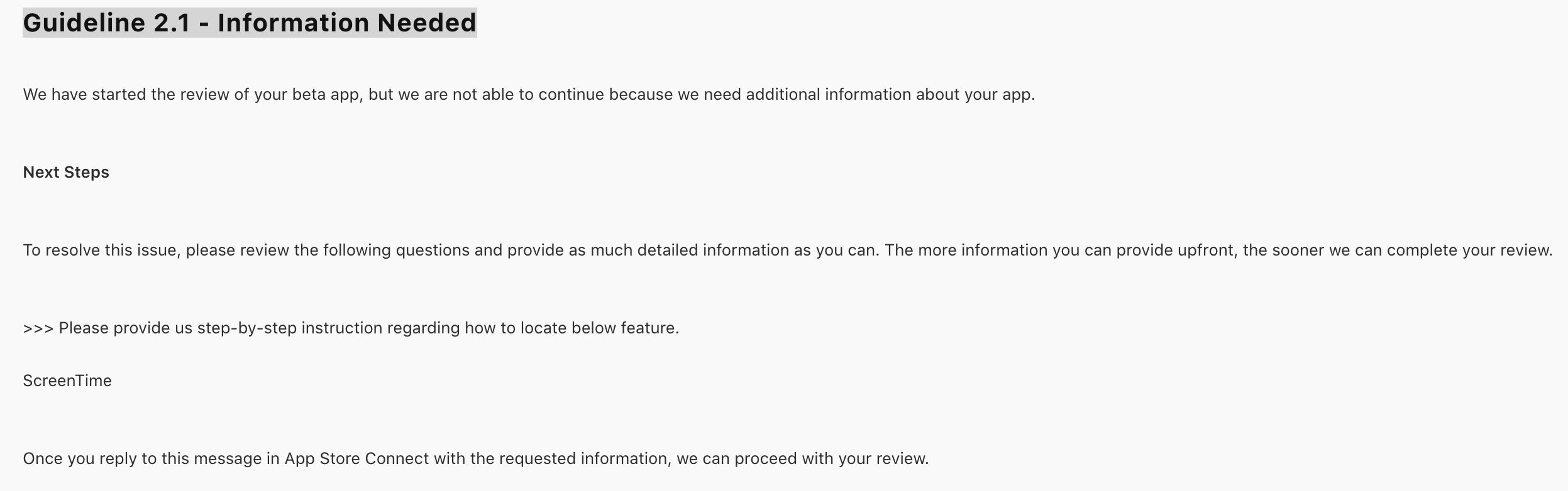 [Apple Developer] Guideline 2.1 - Information Needed 본문